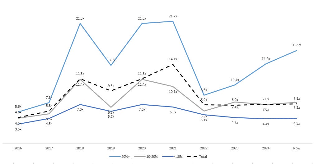 Of course, valuation multiples only serves as a shorthand for how investors view long term sustainable valuation creation. Nevertheless, it is generally helpful for identifying broader dislocation when taken in the historical context.